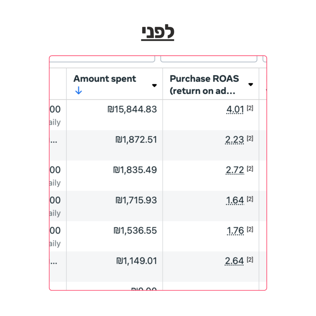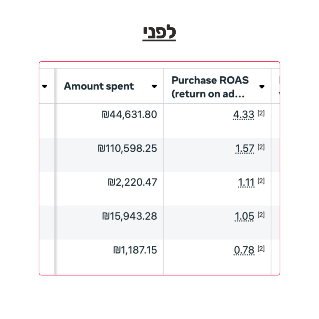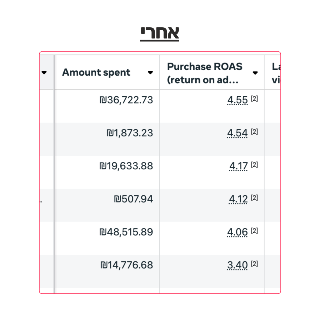 לצמיחה משמעותית בהכנסות וגדילה בהחזר ההשקעה על הוצאות הפרסום ROAS. כל זאת תוך כדי ליווי אישי שמבטיח שהתהליך יתבצע בצורה חלקה ומקצועית.